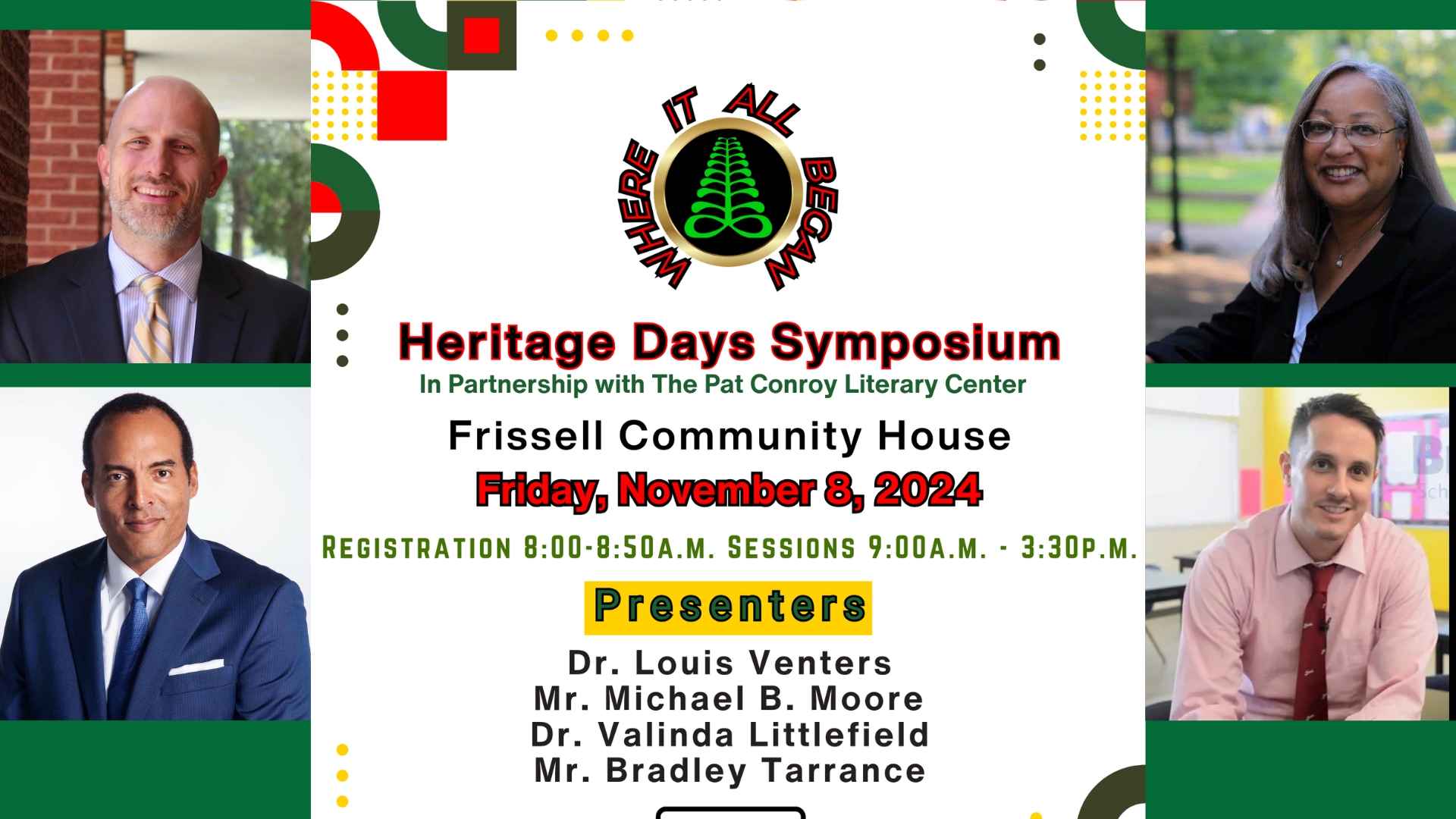 The Heritage Days Symposium Subcommittee, in partnership with The Pat Conroy Literary Center, is hosting the 2024 History Symposium: Where It All Began on Friday, November 8, in Frissell Community House on Penn Center campus. The symposium focuses on the historical impact of the Gullah Geechee culture from Africa to present day Beaufort, South Carolina. Registration is from 8:00 a.m. – 8:50 a.m. with sessions starting at 9:00 a.m. Advance and at-the-door registration is $35, which includes a light breakfast and lunch.