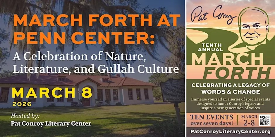 Don’t miss this opportunity to connect with nature, literature, and the vibrant Gullah culture, all while honoring the legacy of Pat Conroy! Limited spots available—secure your ticket today!