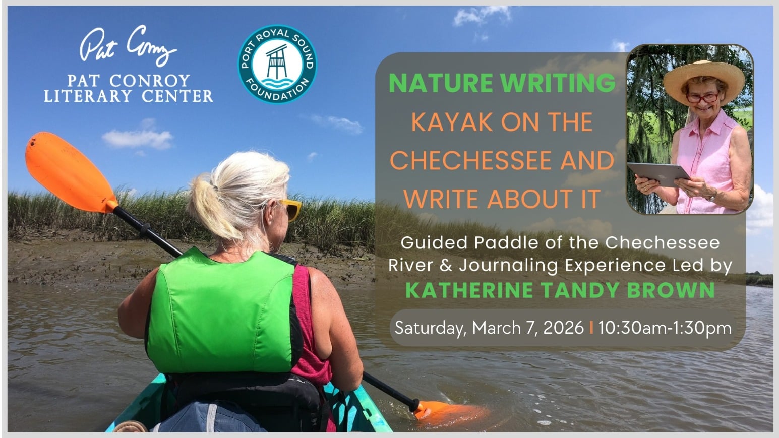 We who live in the South Carolina Lowcountry are fortunate to be surrounded by its extraordinary nature – the marsh and its seasons, live oaks dripping with Spanish moss, 180 degrees of ever-changing sky, marsh and shore birds, crabs and dolphins and fish, the bright sunshine that lights this southern world, and of course, water…the ocean and rivers and their tides. In this workshop you’ll kayak on the Chechessee River with guides from the Maritime Center for a morning immersion in Carolina’s nature at its finest.