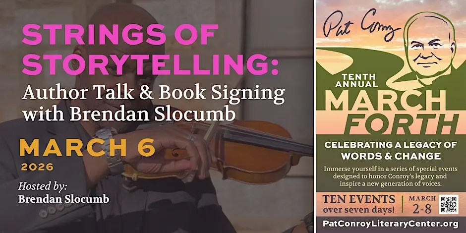 Step into the captivating world of storytelling with award-winning novelist and bestselling author Brendan Slocumb. Known for his compelling novels, including The Violin Conspiracy, Symphony of Secrets, and The Dark Maestro, Brendan will engage attendees in an enlightening discussion about his writing process, inspirations, and the power of music in literature.