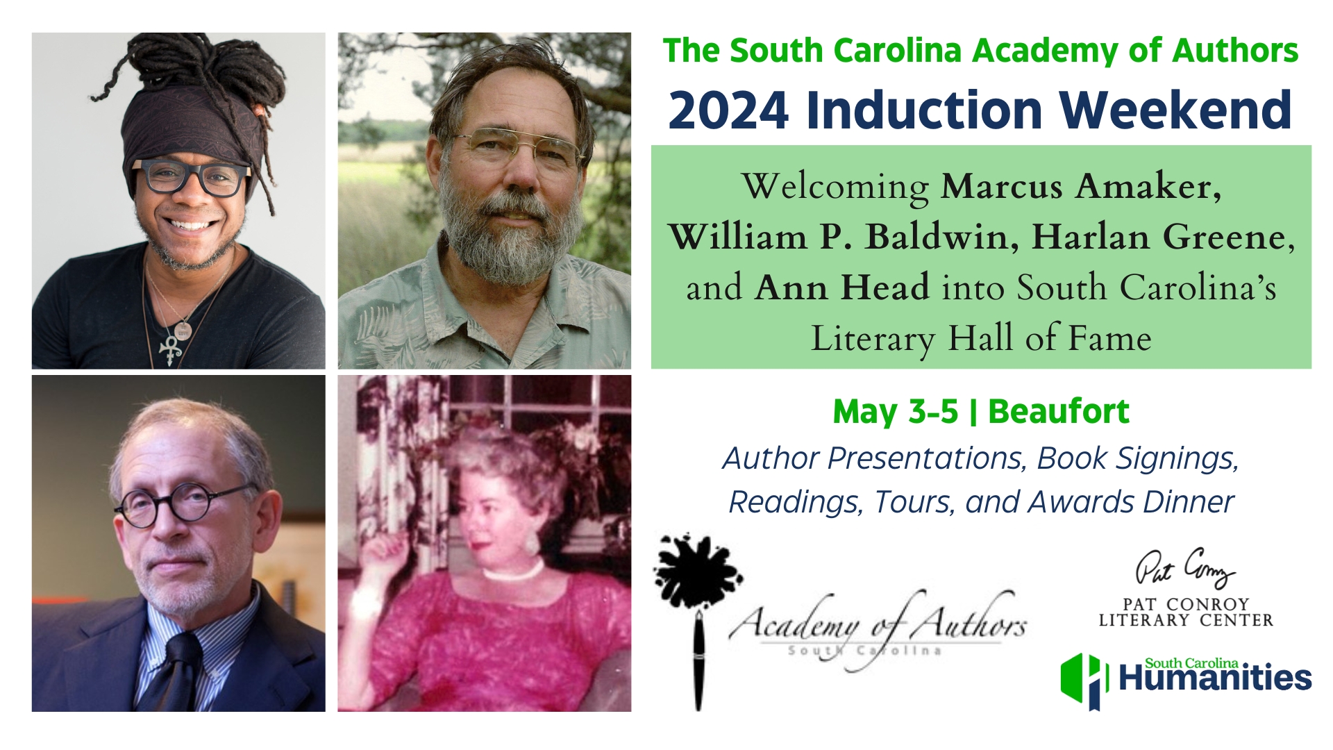 The South Carolina Academy of Authors (SCAA), in partnership with the Pat Conroy Literary Center, will hold its biennial induction weekend in Beaufort this May 3-5. The SCAA selects new inductees whose works have been judged culturally important. Each inductee, whether living or deceased, has added to South Carolina’s literary legacy by earning notable scholarly attention or achieving historical prominence. Including this year’s induction, the SCAA, founded in 1986, will have officially inducted more than 100 authors into its literary hall of fame. This year’s [...]